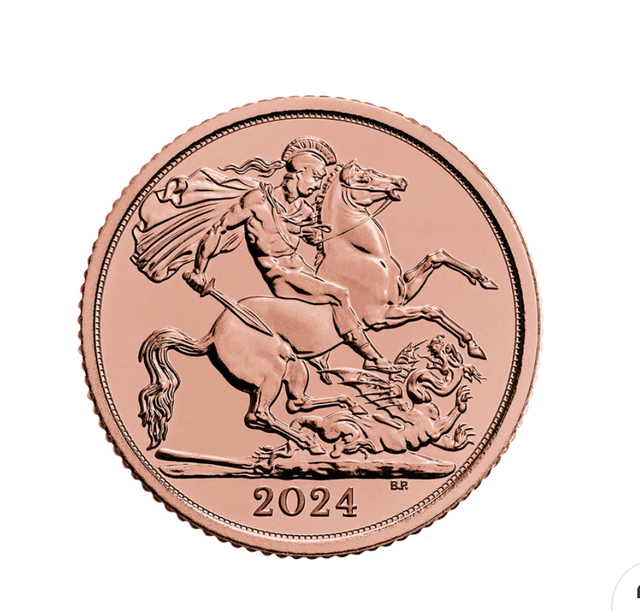 The Sovereign 2024 bullion coin range. This year, the coin returns to Benedetto Pistrucci’s iconic St George and the dragon design, accompanied with the official coinage portrait of His Majesty King Charles III.\n\nFirst produced on behalf of Henry VII in 1489, The Sovereign has always had an association with the British monarchy. Often referred to as the ‘chief coin in the world’, this flagship coin has international appeal and each bullion coin produced by The Royal Mint undergoes a rigorous testing process to ensure investors can collect with confidence.